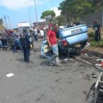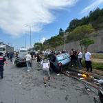 Korkuluklara çarparak durdu...Otomobil parçalara ayrıldı..