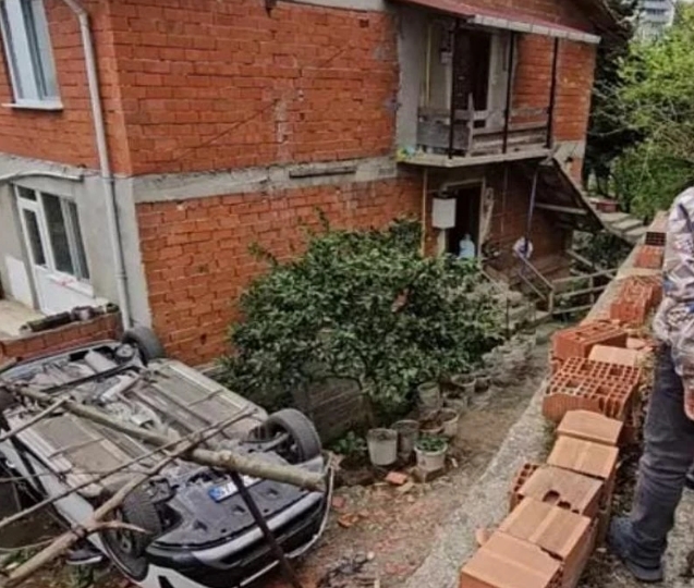 Olay, saat 15.30 sıralarında İncivez Mahallesi Kamelya Sokak'ta meydana geldi. Kumsal G., idaresindeki 67 SK 953 plakalı otomobilini evinin önünde park etmek isterken kontrolü kaybetti. Otomobil 2 metre yüksekten bahçeye düştü. Otomobil ters dönerken kazanın sesini duyanlar panik yaşadı. İhbar üzerine bölgeye polis, sağlık ve itfaiye ekipleri sevk edildi. Yapılan kontrolde sürücü Kumsal G., elinden yaralandığı belirlendi. Ambulansta müdahale edilen sürücü hastaneye gitmedi.