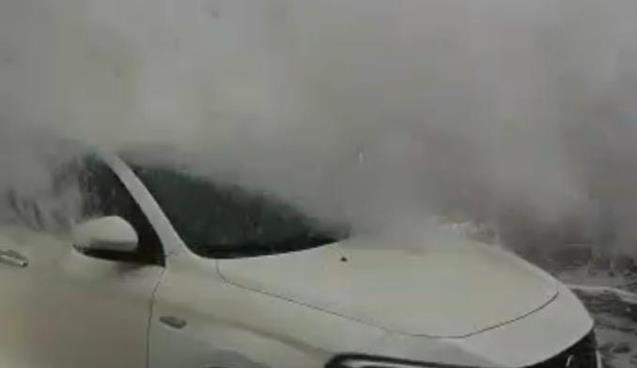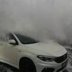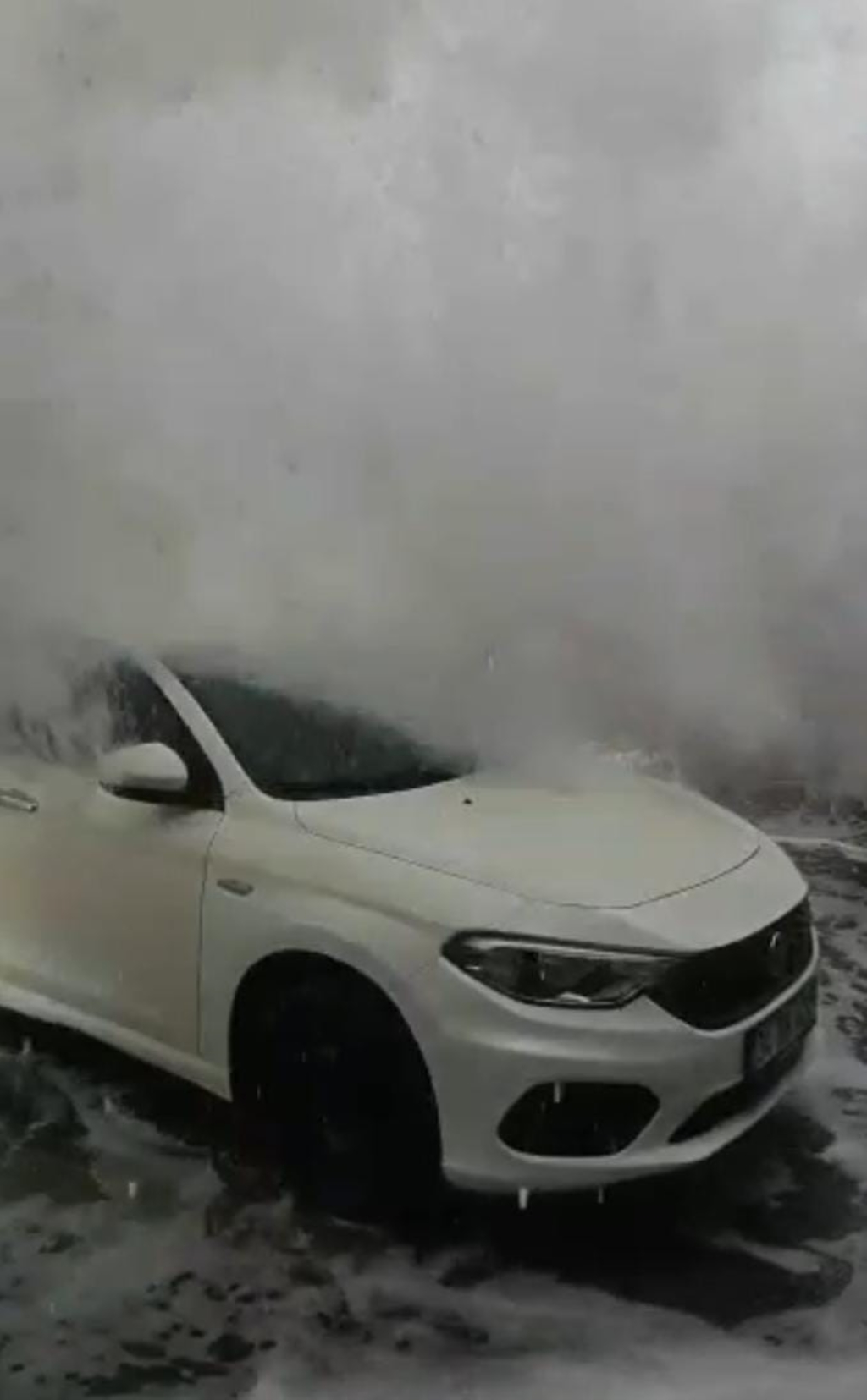 Zonguldak'ta Liman arkası mevkiinde dev dalgaların şiddetinden altında kalan araçta maddi hasar meydana geldi.