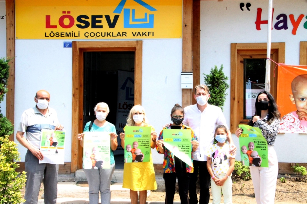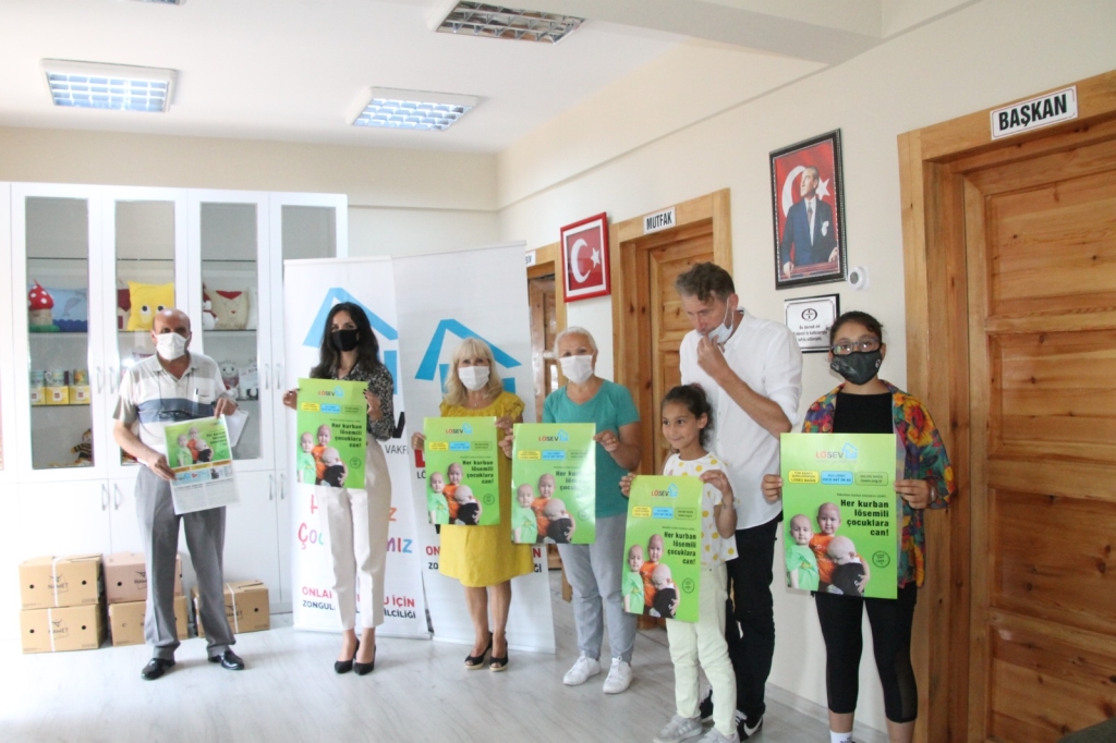 Konuşmaların ardından Lösemili Çocuklar Vakfı (LÖSEV) Zonguldak İl Temsilcisi Tarkan Atik, LÖSEV Sosyal Hizmet Personeli Elif Barış ve vakıf üyeleri, LÖSEV binası önünde fotoğraf çektirdi.