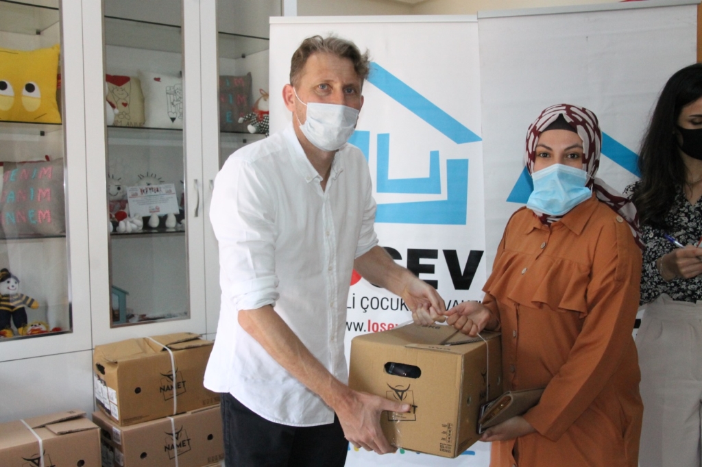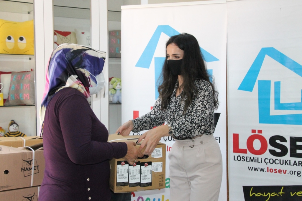 Lösemili Çocuklar Vakfı (LÖSEV) Zonguldak İl Temsilcisi Tarkan Atik, LÖSEV Sosyal Hizmet Personeli Elif Barış, vakıf üyeleri ve lösemili hastaların yakınlarının katıldığı etkinlikte, koliler isim listesine göre teslim edildi.