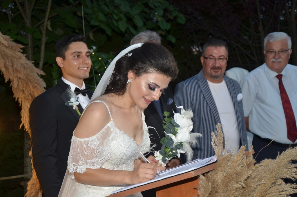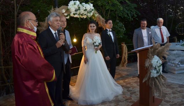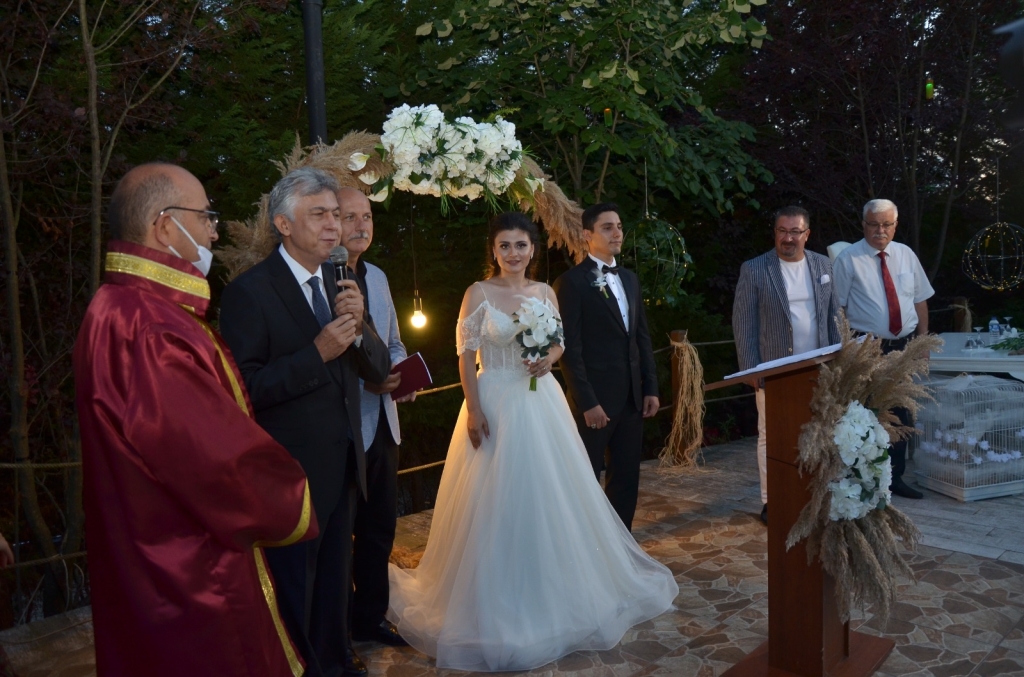 Çiftin Düğün merasimi ise Doğa Park ‘ta yapıldı. Düğün merasimine CHP eski Milletvekili Ali İhsan Köktürk, Belediye Başkan Yardımcısı Tayyar Mendeş ve üyelerinden Yaşare Aydın ve çok sayıda daveti katıldı. Genç çiftin nikah şahitliklerini CHP eski Milletvekili Ali İhsan Köktürk, Belediye Başkan Yardımcısı Tayyar Mendeş ve üyelerinden Yaşare Aydın yaptı. Düğüne Belediye Başkanı Halil Posbıyık, şehir dışında olduğundan katılamadı. Nikâhın kıyılmasının ardından sosyal mesafe kurallarına uyarak eğlenceye devam edildi. Dost ve ailelerle birlikte çekilen hatıra fotoğrafının ardından gece sonlandırıldı.