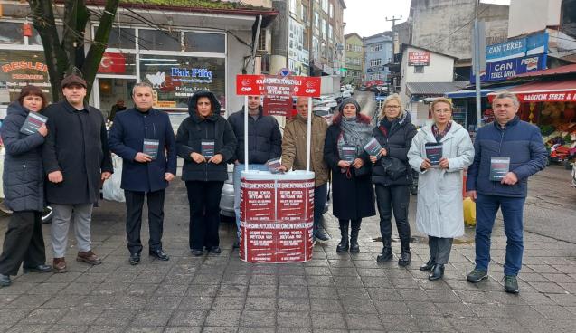 Yürüyüş öncesinde Cumhuriyet Halk Partisi İlçe Başkanı Zerrin Yılmaz Erdoğan ve yönetimi ile birlikte Bağımsız Türkiye Partisi ilçe başkanı Tuncay Beytekin ile teşkilat başkanı Derya Altın’ın da katılımı ile ‘GEÇİNEMİYORUZ’ broşürü dağıtıldı.
