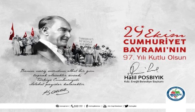Kdz. Ereğli Belediye Başkanı Halil Posbıyık, 29 Ekim Cumhuriyet Bayramı’nı kutladı. Başkan Posbıyık mesajında; “Cumhuriyetimizi korumak ve geliştirmek için pusulamız Atatürk ilkeleri ve devrimleridir” dedi.