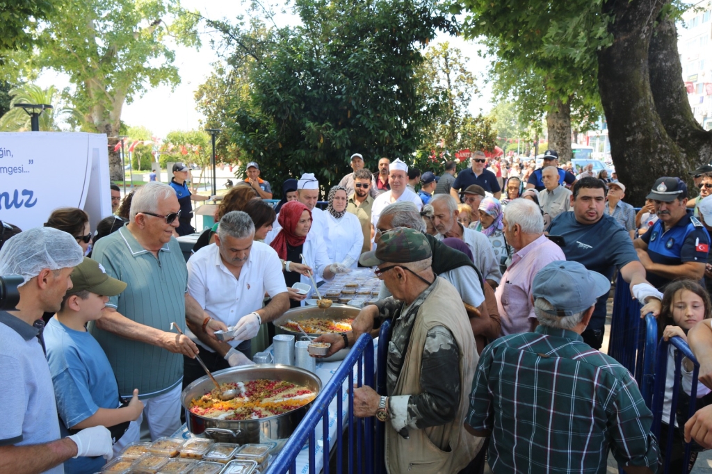 Başkan Posbıyık’ın konuşmasının ardından din görevlileri, günün önemine binaen dua etti. Başkan Posbıyık, eşi Neriman Posbıyık ve torunu Mehmet Duhan Urcu ile meclis üyeleri ve başkan yardımcıları kazanların başına geçerek vatandaşlara aşure servisi yaptı. Aşureleri alan vatandaşlar Başkan Posbıyık’a ‘Allah kabul etsin’ diyerek teşekkür ettiler.