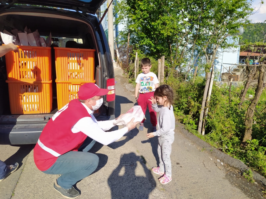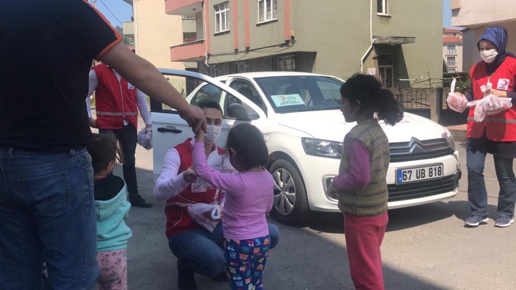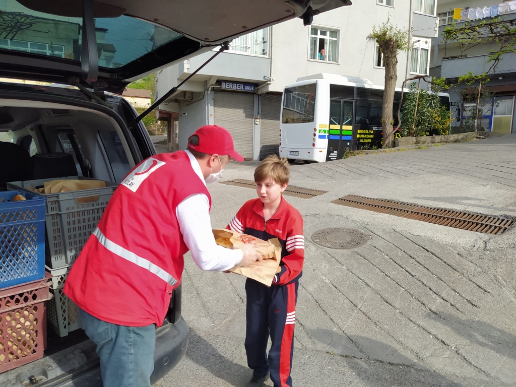 Zonguldak’ın Ereğli ilçesi Kızılay Şube başkanlığı tarafından mahallerde 1000 adet pide, 250 koli su ve çocuklara oyuncak, çikolata ve boyama kitabından oluşan toplam bin 150 adet paket dağıtıldığı bildirildi.