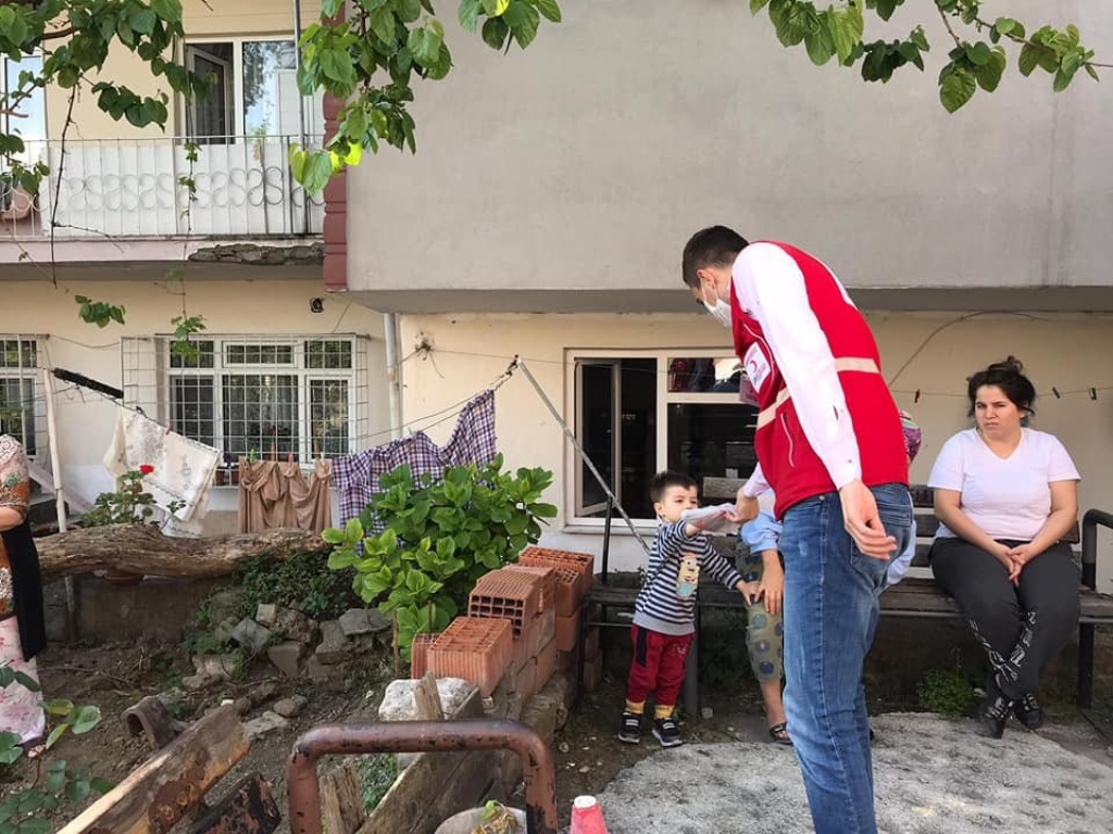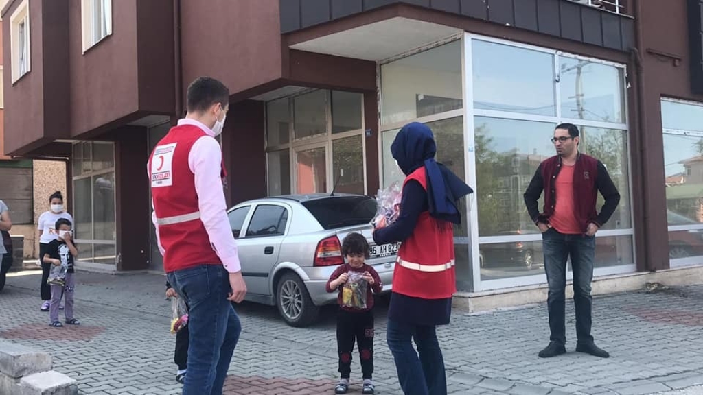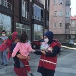 Koronavirüs sebebi ile yaşanan zorlu günlerde Ereğli Kızılay Şube başkanlığı tarafından yapılan yardımlar yüz güldürüyor. İhtiyaç sahipleri başta olmak üzere Koronavirüs sebebi ile karantinada kalan ailelere kumanya desteği ile vatandaşın yanında olan Kızılay Ereğli Şubesi, Ramazan ayında da kumanya, pide, elemek dağıtımı ile hanelere ulaşarak vatandaşların yüzünü güldürmeye devam ediyor. Sokağa çıkma yasağının ikinci günü olan 2 Mayıs Cumartesi günü 3 ayrı ekip ile birlikte Kışla, Köseler, İlyas Karaca, Kışla, Aktaş, Bağlık ve Kepez mahallerine giderek yaklaşık 1000 adet pide, 250 koli su dağıtımı gerçekleştiren Kızılay Ereğli Şube yönetimi ve gönüllüleri, çocuklara oyuncak, çikolata ve boyama kitabından oluşan toplam bin 150 adet paket dağıtarak çocukları sevindirdi.
