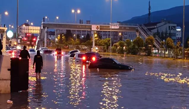 Karabük'te etkili olan sağanak nedeniyle kent merkezinde cadde ve sokaklar suyla doldu, birçok araç yolda kaldı.