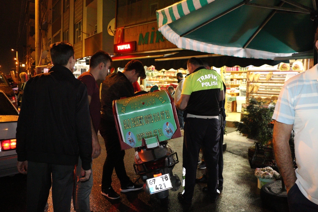 Kaza Bağlık Mahallesi Hatip Sokak üzerinde teravih namazı öncesinde meydana geldi. Alınan bilgilere göre 06 NY 160 plakalı otomobil sürücüsü karşı yönden gelen Dursun Aldırmaz’ın (36) kullandığı 67 TB 421 plakalı motosiklete çarptı. Çarpmanın etkisi ile devrilen motosiklet sürücüsü yaralandı. Aracından inerek yaralı motosiklet sürücüsüne balan otomobil sürücüsünün, aracını park edip geleyim dedikten sonra olay yerinden kaçtığı iddia edildi. Yaralı sürücü Aldırmaz, sağlık ekiplerinin ilk müdahalesinin ardından özel hastaneye kaldırılarak tedavi altın alındı. Görgü şahitleri, araç sürücünün motosiklete çarptıktan sonra otomobili park edip geleceğini söyledikten sonra kaçtığını ifade ettiler. Aldırmaz’ın hayati tehlikesinin bulunmadığı ve ayağında ezilme olduğu öğrenildi. Polis kaçan sürücüyü arama çalışması başlatırken, savcılık kaza ile ilgili soruşturma başlattı.