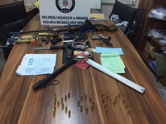 Zonguldak’ta organize suç örgütüne yönelik düzenlenen eş zamanlı operasyonlarda örgüt liderinin de aralarına bulunduğu 12 kişi gözaltına alındı. Operasyonda çok sayıda çek ve senet, silah, pompalı tüfek ve F serisi 1 dolar ile bazı isimlerin bulunduğu listeler ele geçirildi.