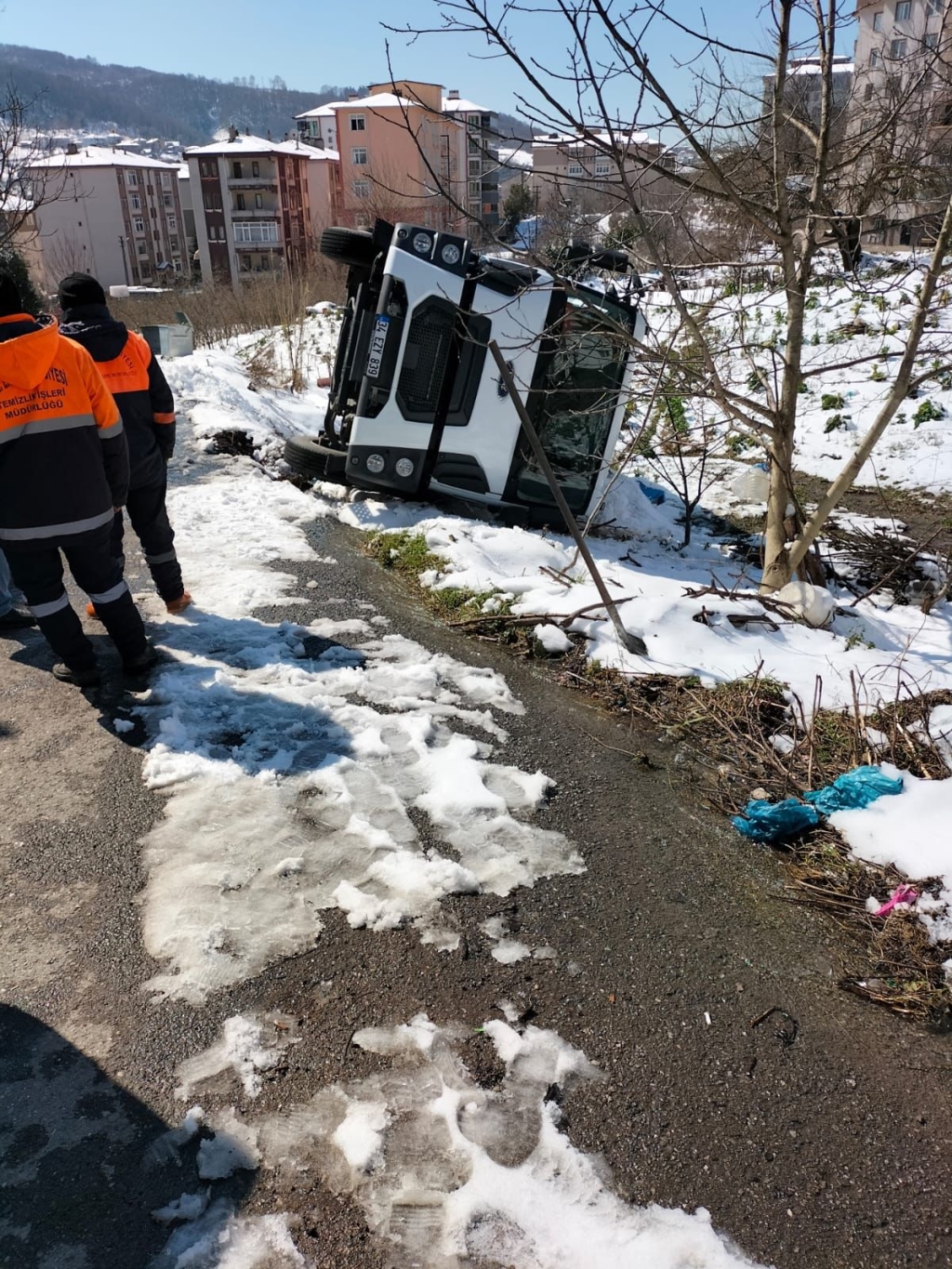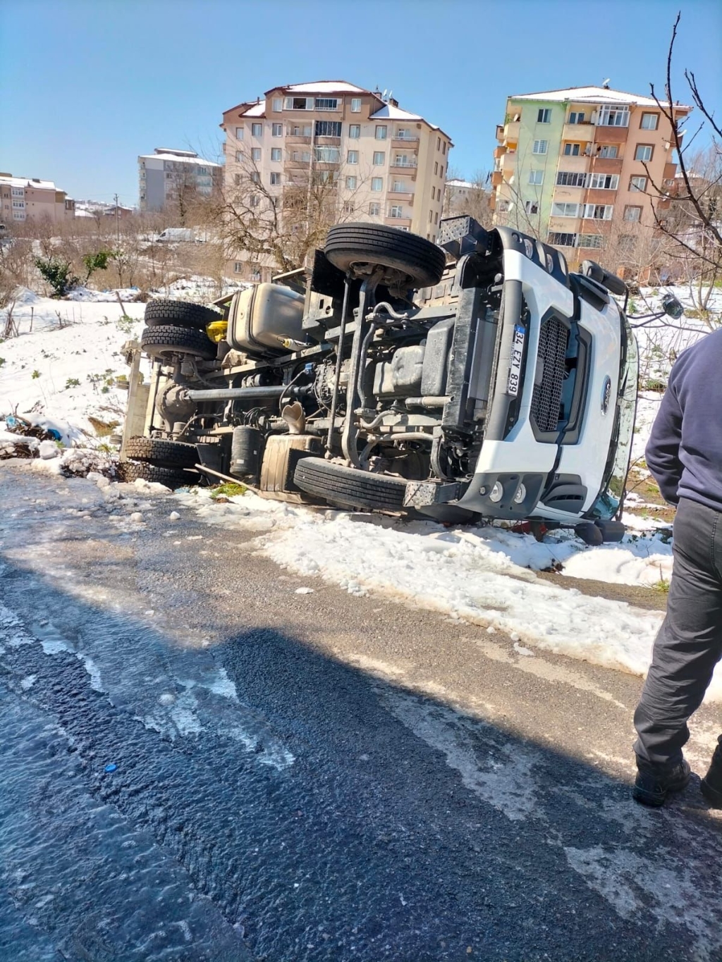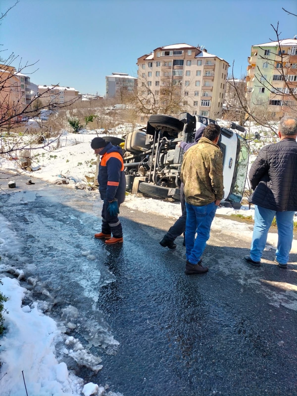 Olay Kepez Mahallesi Çetin Emeç Caddesi'nde meydana geldi. İtfaiye göre seyir halindeki 34 EZY 839 plakalı çöp kamyonu yerdeki buzlanmadan dolayı kayarak yan yatarak tarlaya girdi. Şans eseri yaralanan olmazken maddi hasar meydana geldi. Olay yerine gelen çekici yardımıyla çöp kamyonu bulunduğu yerden kaldırıldı.