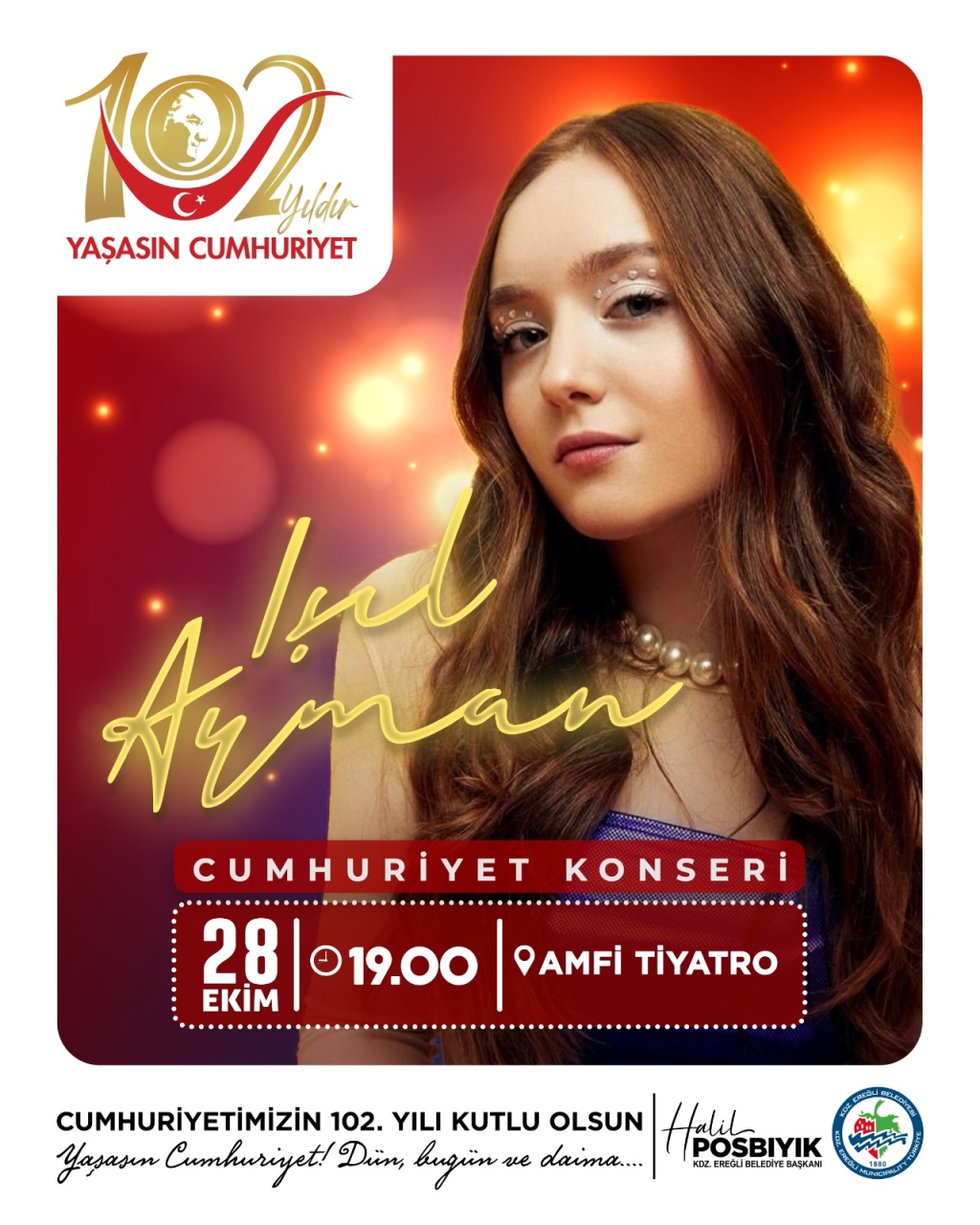 Cumhuriyetin kazanımlarını ve değerlerini gelecek kuşaklara aktarma sorumluluğuyla her yıl olduğu gibi bu yıl da anlamlı bir kutlama programı hazırlayan Kdz. Ereğli Belediyesi, 29 Ekim Cumhuriyet Bayramı etkinlikleri kapsamında düzenleyeceği “Cumhuriyet Konserleri” ve “Cumhuriyet Yürüyüşü” ile tüm vatandaşları birlik, beraberlik ve coşku içinde Cumhuriyetimizin ilanının 102. yıl dönümünü kutlamaya davet ediyor.