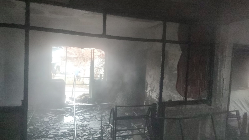 Dağlıca köyünde çıkan yangında ev tamamen yandı.