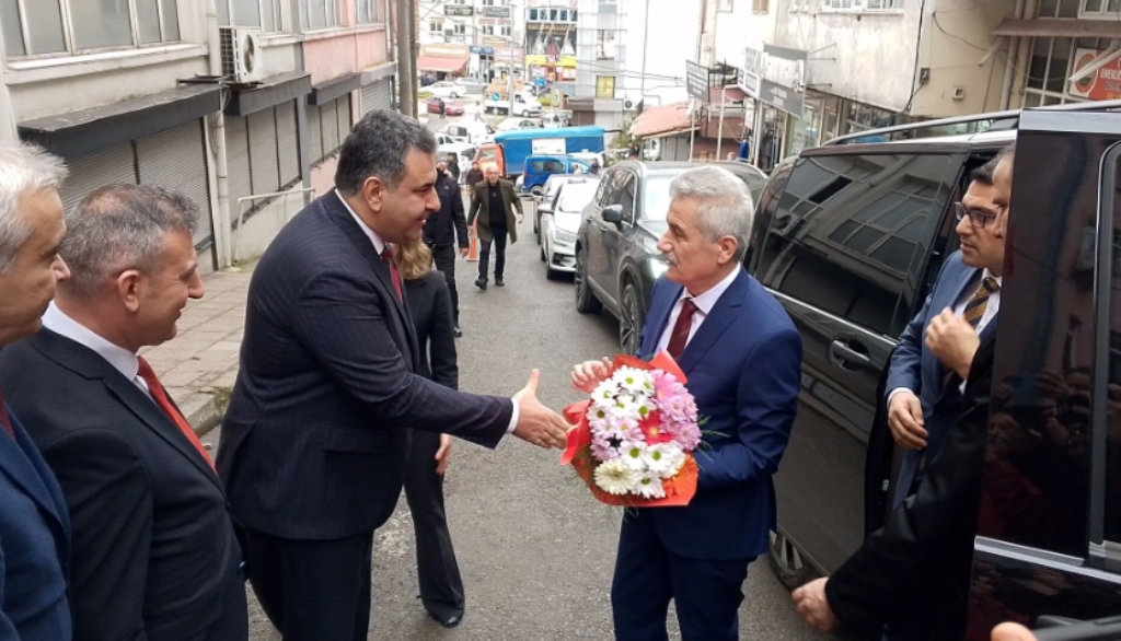 Öğrencilerin çiçek takdim ettiği Yiğit, Kaymakam Köksal ile bir süre görüşmesinin ardından Alaplı Adliyesi'ne ziyarette bulundu.