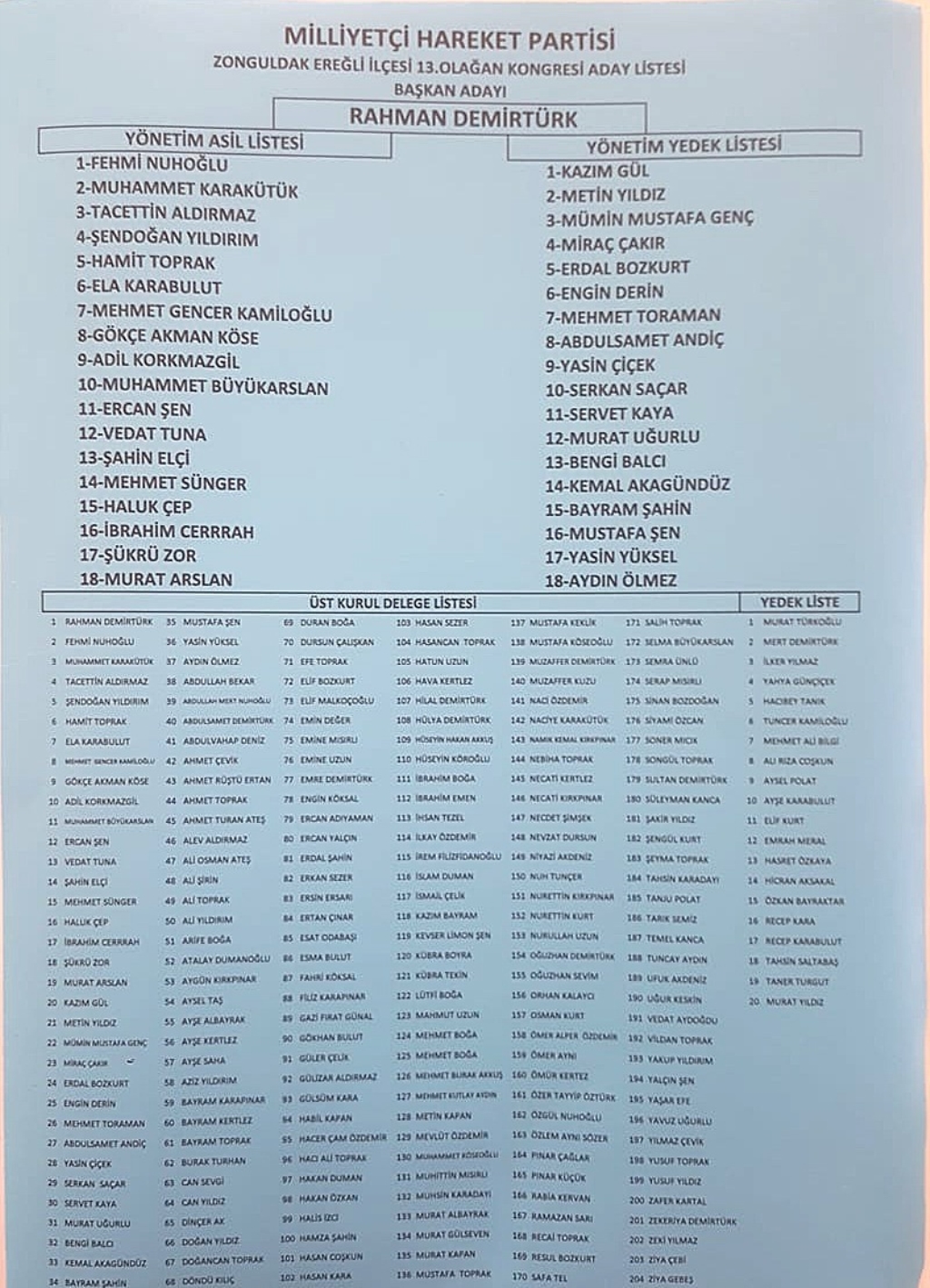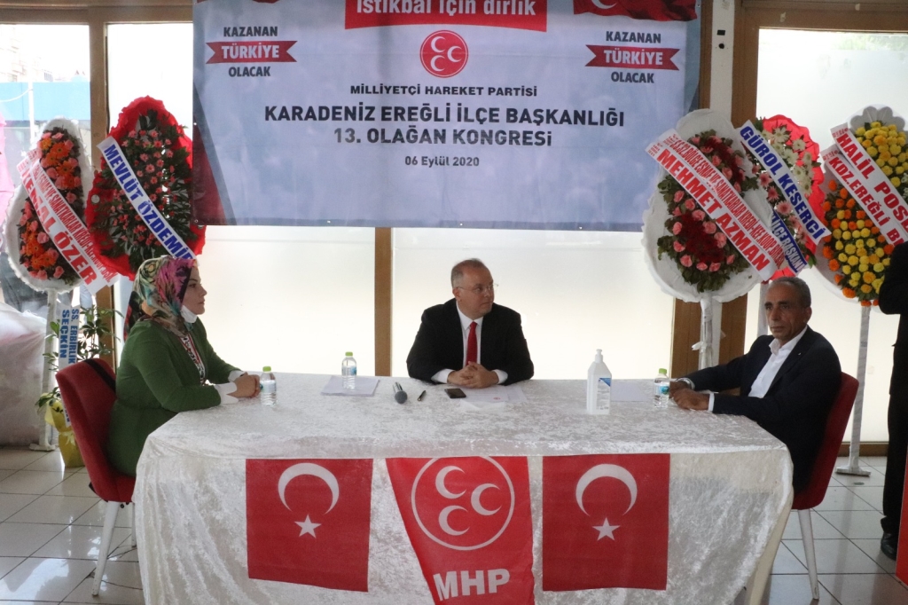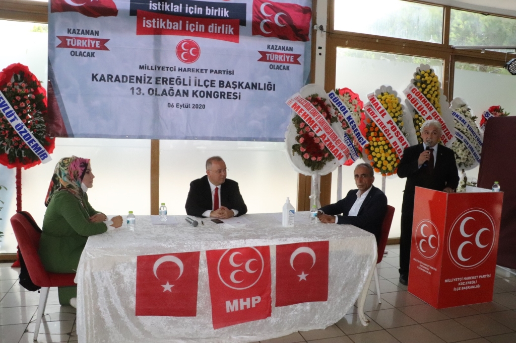 Zonguldak’ın Ereğli ilçesi Milliyetçi Hareket Partisi İlçe Başkanı Rahman Demirtürk 13. Olağan Genel Kurul’da delegelerin büyük çoğunluğunun oyunu alarak yeniden başkanlığa seçildi.