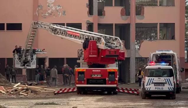Bolu'da güçlendirme çalışması yapılan öğrenci yurdunun iskelesinden düşen inşaat işçisi İrfan Üzümcü (34), yaralandı.