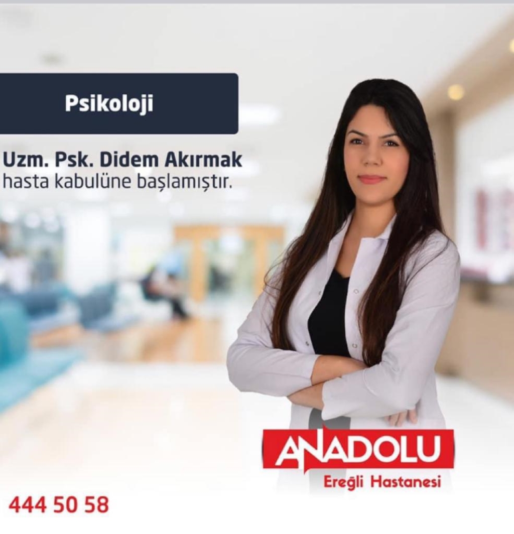 Zonguldak’ın Ereğli ilçesi Özel Anadolu Hastanesi yönetimi tarafından Uzman Klinik Psikolog Didem Akırmak’ın hasta kabulüne başladığı bildirildi.