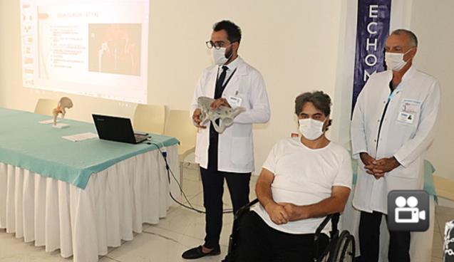 Ortopedi ve Travmatoloji Uzmanı op. Dr. Volkan Tutuş'da sözlerine önceliklerinin hasta memnuniyeti olduğunun altını çizerek başladı. 47 yaşında olan ve doğuştan kalça çıkığı rahatsızlığı bulunan, başarılı bir operasyonla şifaya kavuşan hasta Ersin Dursun' 'un da salona alınması ile devam eden toplantıda sunu eşliğinde konuşan Tutuş, hastanın 1990 yılında, 2006 yılında ve 2008 yılında farklı hastanelerde kalça protez cerrahisi operasyonları geçirdiğini kaydetti. Hastaya son olarak kendisi tarafından 5 Ekim tarihinde Echomar Hastanesi'nde Custum Made(kişiye özel üretilmiş)Kalça Protez Cerrahisi gerçekleştirdiğini ifade eden Dr. Tutuş, tıbbı-teknik detaylar vererek takılan protezin yerli üretim Titanyum içerikli olduğunu açıkladı.