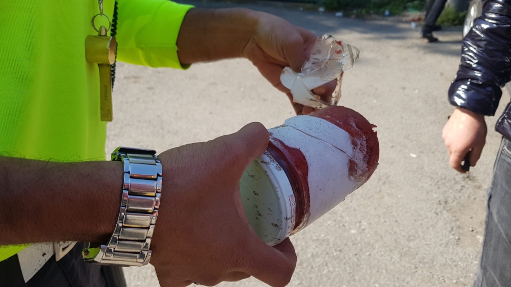 Eline aldığı şişeleri, araçlara fırlatarak zarar verdi.
