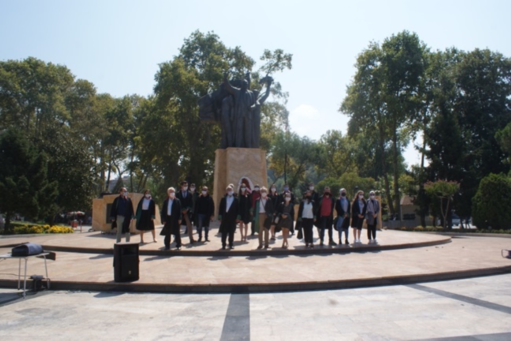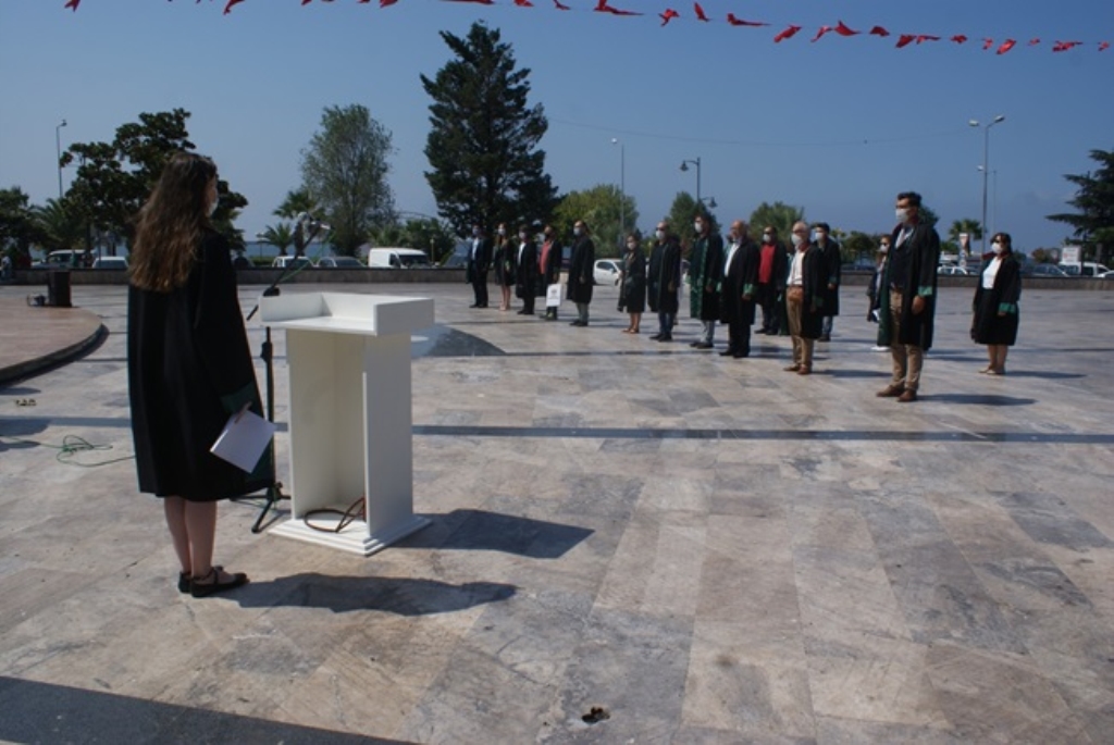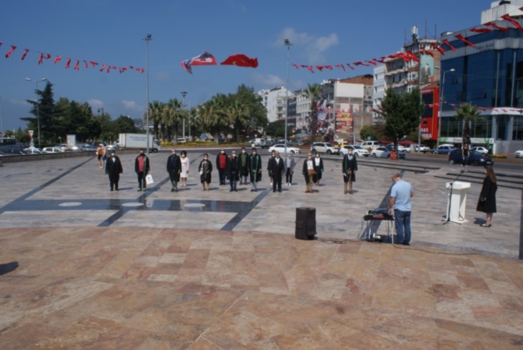 Karadeniz Ereğli’de yeni adli yıl açılışı dolayısıyla tören düzenlendi. Devrim Bulvarı Atatürk Anıtı önünde düzenlenen törende saygı duruşunda bulunularak İstiklal Marşı okundu. Zonguldak Barosu Karadeniz Ereğli Temsilcisi ve Ereğli Hukukçular Derneği Başkanı Eren Demircan, burada yaptığı konuşmada, yeni tip koronavirüs (Kovid-19) sürecinden bir an önce kurtularak sağlıklı günlere kavuşma dileklerinde bulundu.
