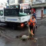 Belediye Temizlik İşleri Müdürlüğü ile Su ve Kanalizasyon İşleri Müdürlüğü ekipleri gece yarısından itibaren tıkanan mazgalları anlık olarak temizledi, dereler ise kontrol altında tutuluyor.