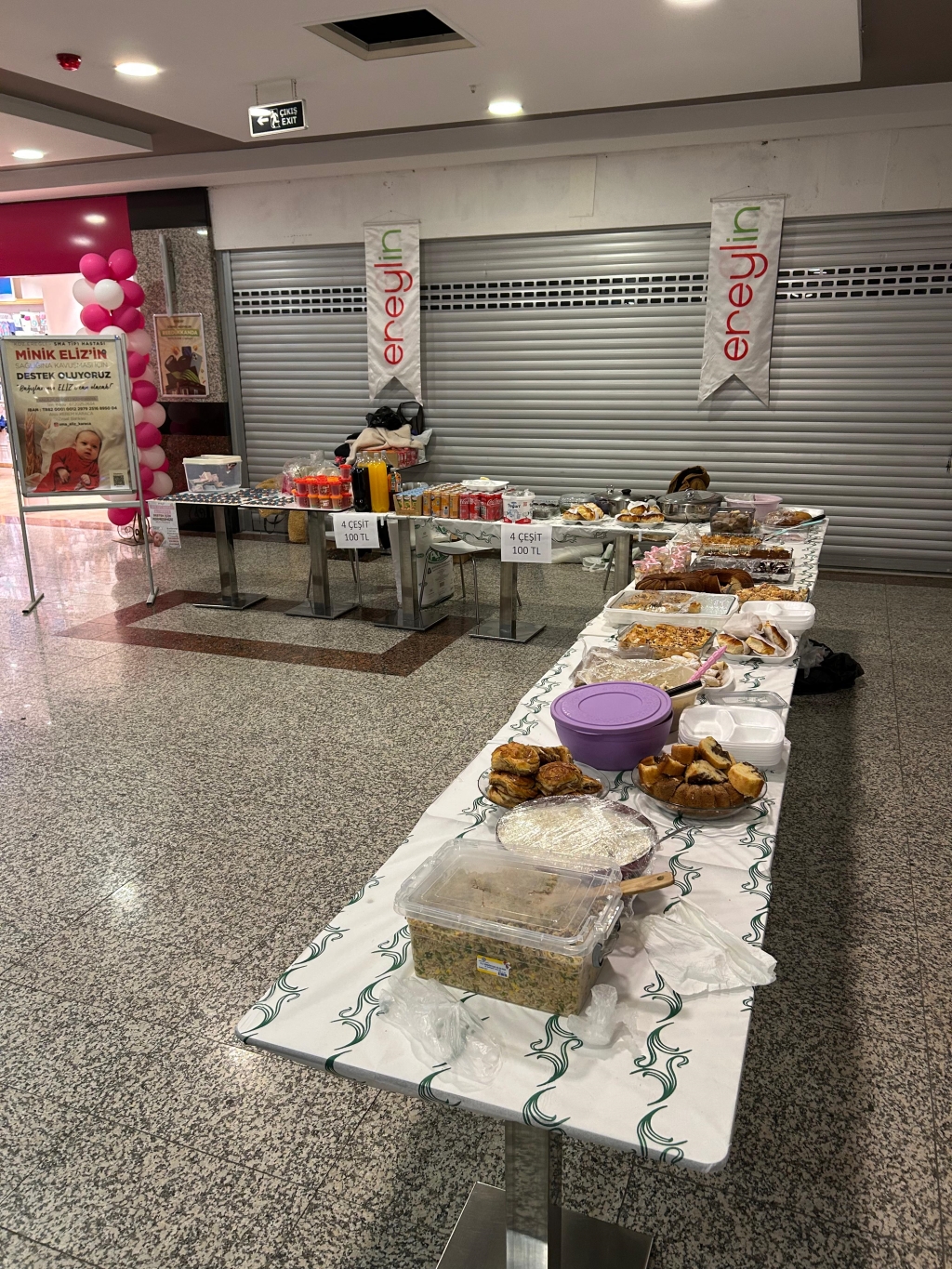 Kdz. Ereğli'nin ilk alışveriş merkezi Ereylin AVM mağaza çalışanları Sma Hastası Eliz Bebeğin tedavisi için yardım toplamak amacıyla yaptıkları yiyecekler ile kermes düzenledi.