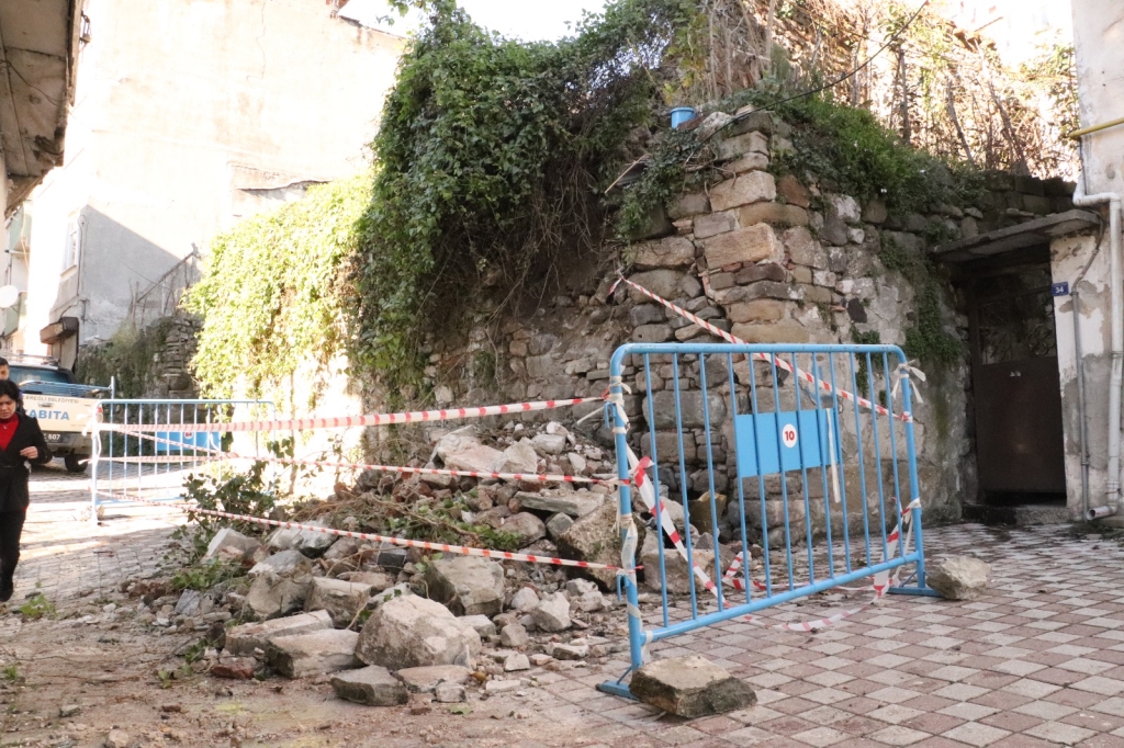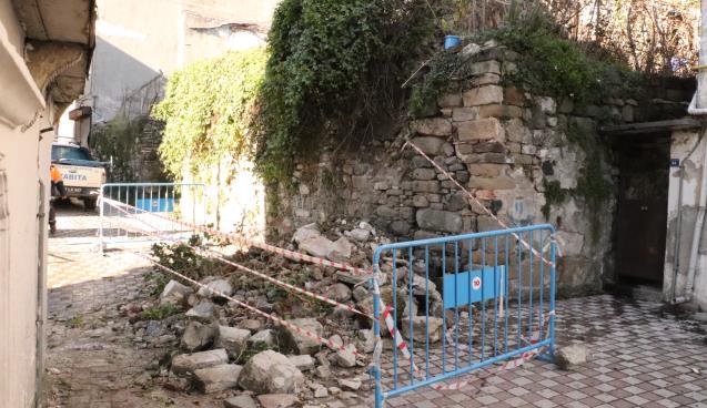 Zonguldak’ın Ereğli ilçesinde atıl durumdaki evin istinat duvarı çöktü. Olayda şans eseri yaralanan olmazken, moloz yığını yapılan çalışma ile kaldırıldı.
