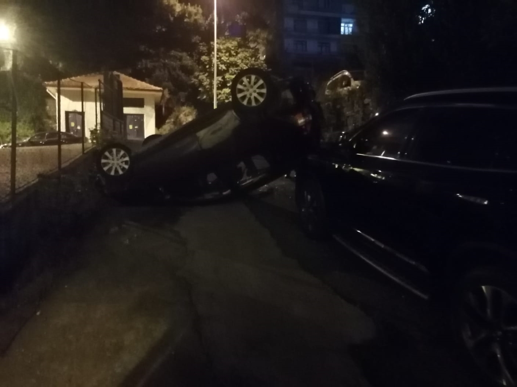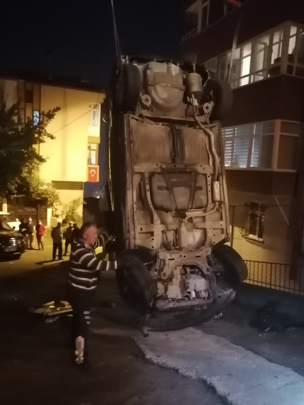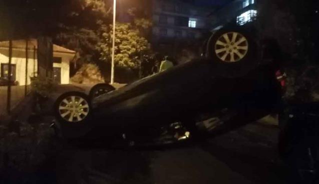 Kaza Akarca Mahallesi Kız Kapısı Caddesinde meydana geldi. İddiaya göre Nilüfer İ. (50) 34 EY 770 plakalı otomobilini park ettiği sırada fren yerine gaza bastı. Sürücünün kontrolünden çıkan otomobil 5 metre yükseklikten park halinde ki 81 AAU 225 plakalı otomobilin üzerine düştü. Kazada yaralanan olmazken araçlarda maddi hasar meydana geldi. Ters dönen otomobil çekici vasıtası ile kurtarıldı. Ekipler araçların kurtarılmasının ardından olay yerinden ayrıldı.