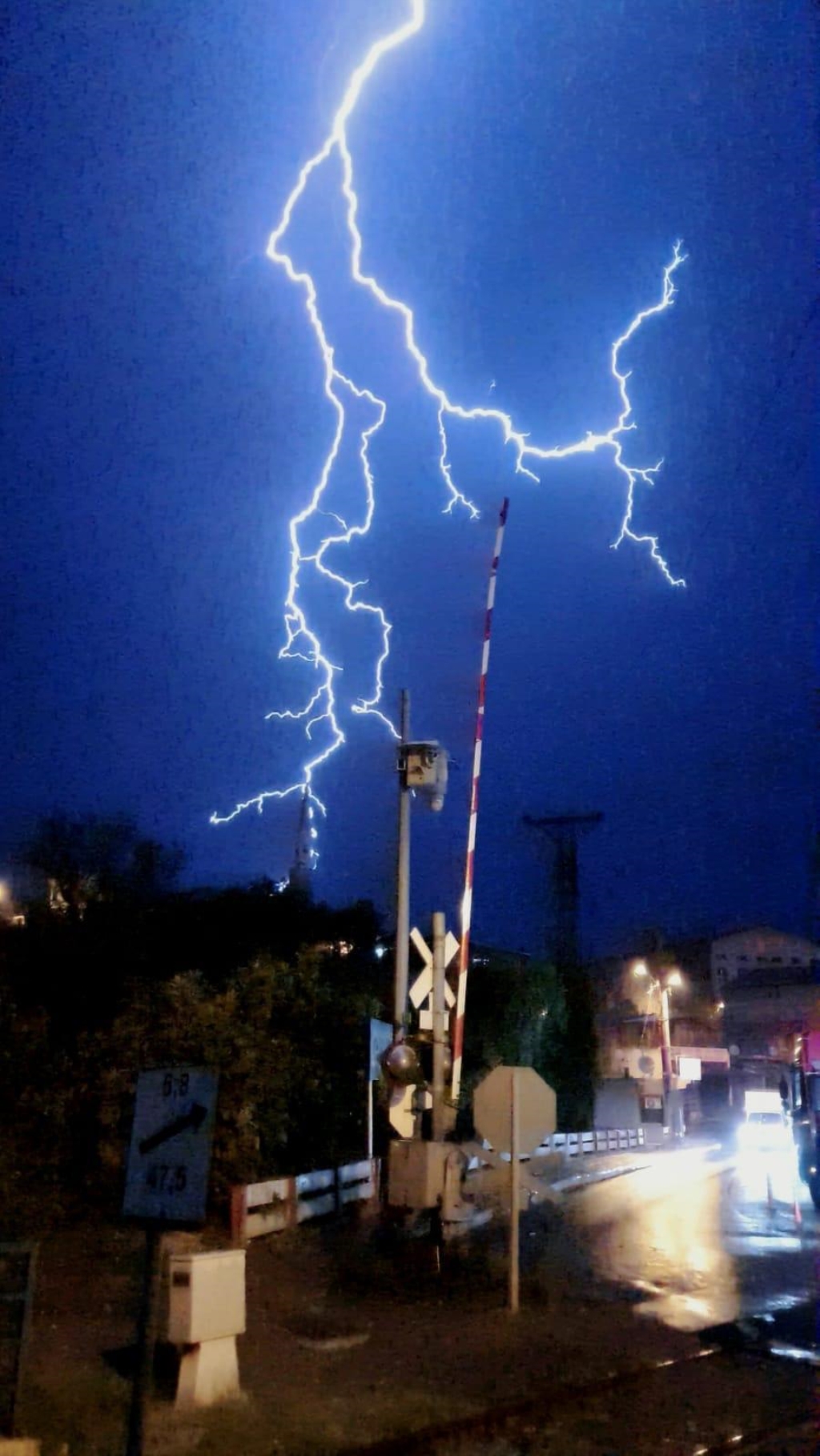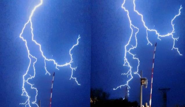 Gece geç saatlerde kenti etkisi altına alması beklenen yağmur öncesi peş peşe şimşek çakmasıyla gökyüzünü aydınlattı. Gürültü ile gökyüzünü mavi ve beyaza boyayan şimşekler renkli görüntüler oluşturdu.