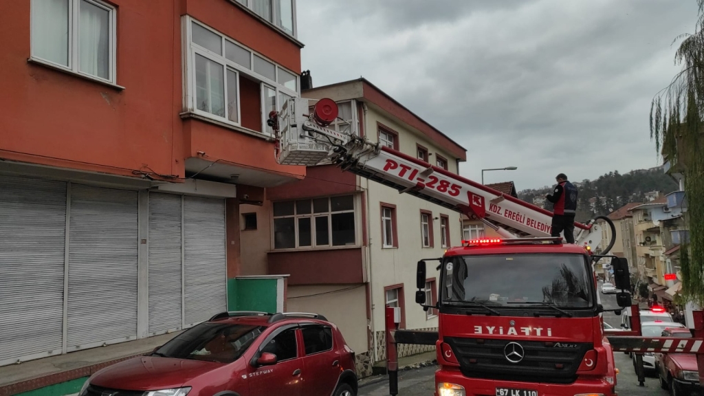 Zonguldak’ın Ereğli ilçesinde haber alınamayan İ.D. için ekiplere haber verildi. Olay yerine gelen İtfaiye, 112 ve polis ekipleri eve girmek için çalışma başlattı.