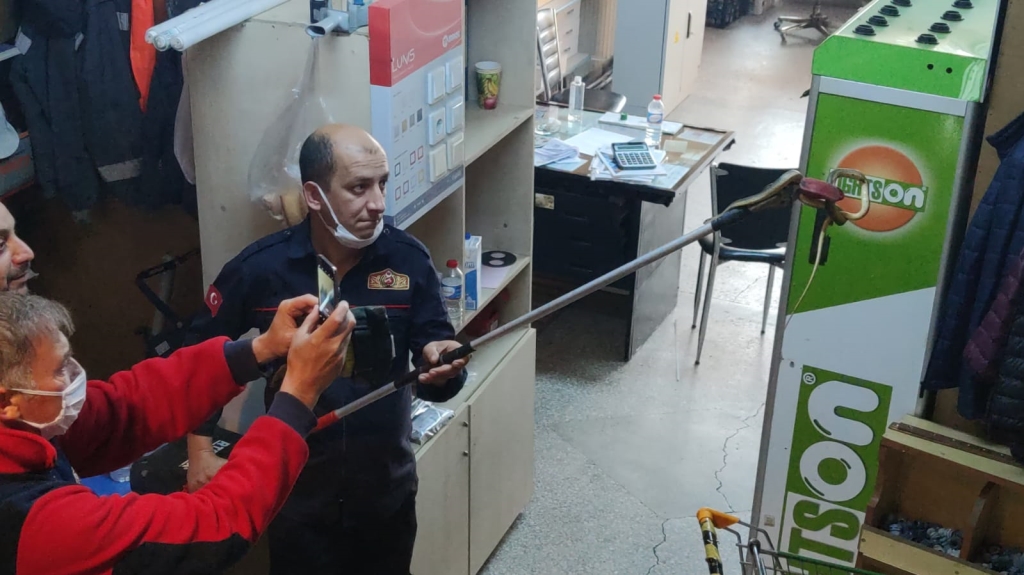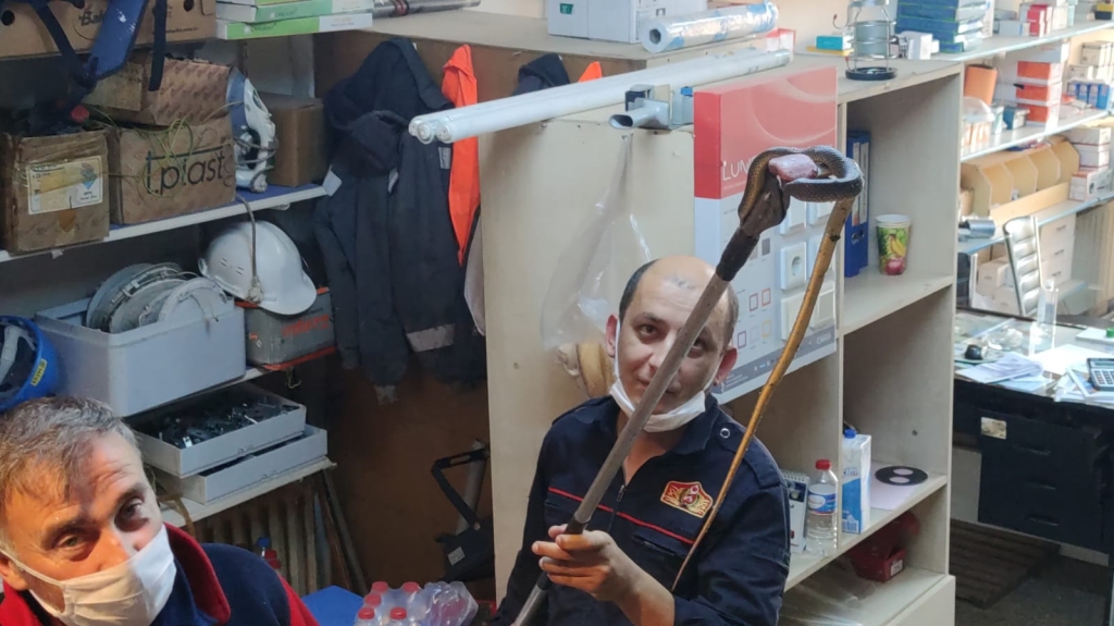 Zonguldak’ın Ereğli ilçesine bağlı Gülüç beldesinde iş yerine giren yılan, deri değiştirdiği sırada iş yeri sahibi tarafından fark edildi. Yaklaşık 1.5 metre uzunluğunda ki yılan Ereğli Belediyesi İtfaiye ekipleri tarafından yakalanarak doğal ortamına bırakıldı.