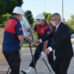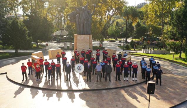 Belediye Başkan Yardımcısı Atilla Bulak, İtfaiye Müdürü Muhammet Ali Ateş ve İtfaiye personeli Atatürk Anıtı’na çelenk sundu, saygı duruşunda bulunarak İstiklal Marşı’nı okudu.