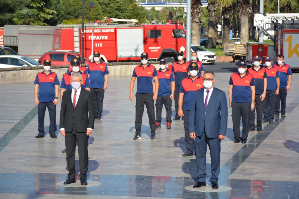 Kdz Ereğli Belediyesi İtfaiye Müdürü Muhammet Ali Ateş, yaptığı konuşmada pandemi koşulları nedeniyle bu yıl kutlamaları sınırlı tuttuklarını belirtti. Kdz. Ereğli Belediye İtfaiyesi’nin 200 bin nüfusa hizmet verdiğini anlatan Ateş, şunları söyledi;