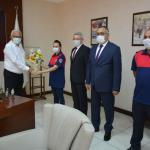 Başkan Yardımcısı Atilla Bulak ve İtfaiye Müdürü Muhammet Ali Ateş daha sonra 2 itfaiye personeli ile Belediye Başkanı Halil Posbıyık’ı ziyaret ederek çiçek takdim etti.