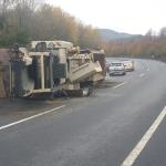 Kaza Ereğli Zonguldak Karayolu Bayat köyü mevkiinde meydana geldi. İddiaya göre Zonguldak’tan Ereğli istikametine giden Tayfun Vural idaresinde ki 78 BS 505 çekici 78 ABA 139 Dorse plakalı TIR, lastiğin patlaması sonucu sürücünün direksiyon hâkimiyetini kaybetmesi sonucu devrildi. Kazayı gören vatandaşlar sağlık ve polis ekiplerine haber verildi. Olay yerin gelen 112 ekipelri sürücünün yaralı olmadığını beyan etmesi üzerine kaza yerinden ayrıldı. Kazada devrilen TIR ve iş makinesinde hasar meydana geldi. Kazadan dolayı trafik tek şeritten verilirken, TIR ve iş makinesinin yoldan kaldırılması için çalışma başlatıldığı öğrenildi.
