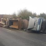 İş makinesi taşıyan TIR devrildi...