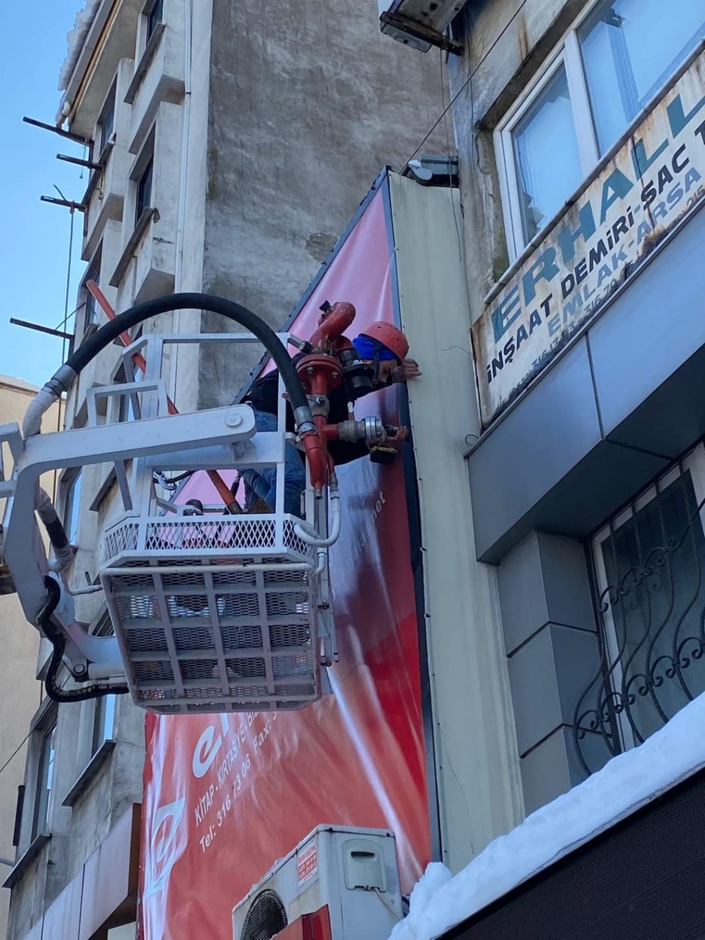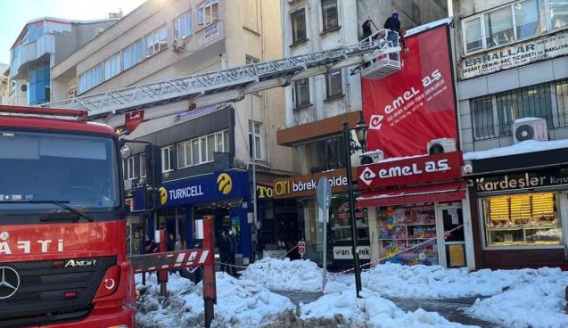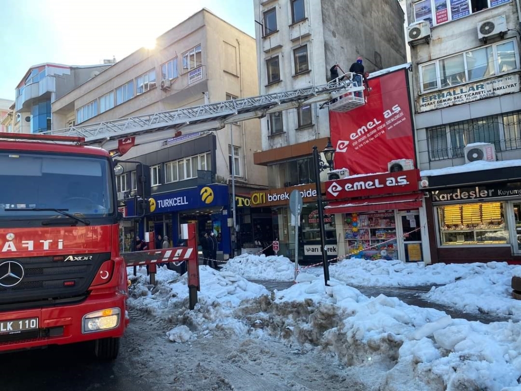 Olay, Müftü Mahallesi Meydanbaşı Caddesi üzerinde meydana geldi. Edinilen bilgiye göre, çatıdan düşen kar kütlelerinin bir iş yerinin tabelasını koparttığı ve tehlike arz ettiği ihbarı üzerine olan yerine itfaiye ekipleri sevk edildi. Çevre emniyeti alındıktan sonra kopan tabela tekrar yerine takıldı.