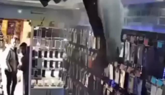 Bartın, Hükümet caddesine telefon aksesuarı satan iş yerinin tavanı çöktü. O anlar kameralara yansıdı.