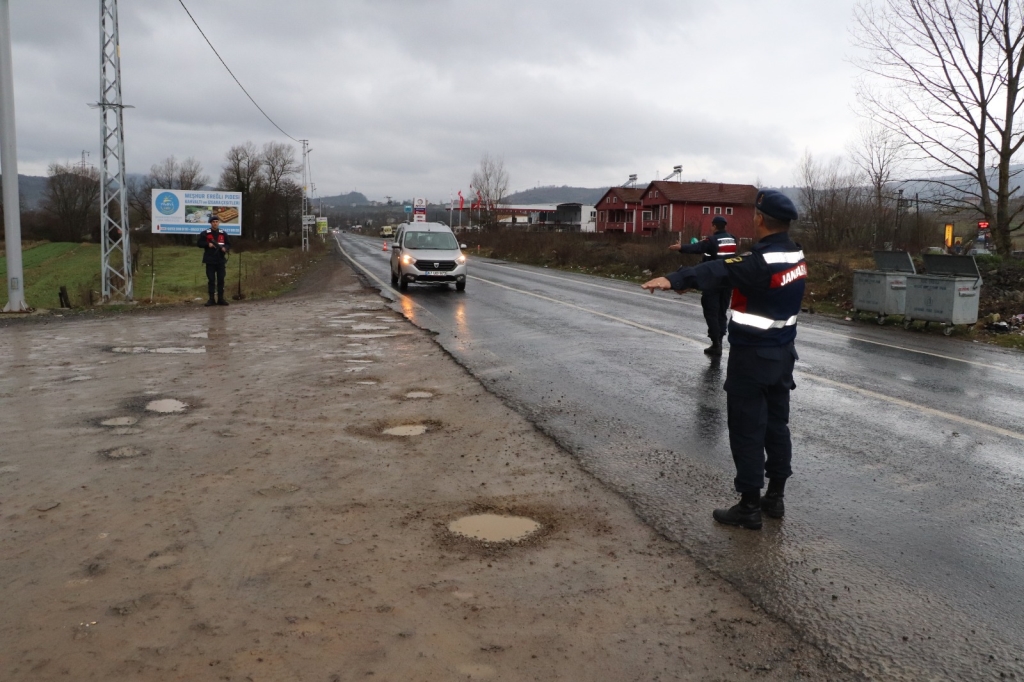 Zonguldak’ın Ereğli ilçesi Jandarma kolluk kuvvetleri, yılbaşı dolayısıyla huzur uygulamasına başladı. Erken saatlerde başlayan uygulamanın hem Jandarma hem Polis tarafından yapılacağı bildirilirken, İlçe Kaymakamı İsmail Çorumluoğlu, Deli Hakkı mevkiinde uygulama yapan ekipleri ziyaret ederken, Jandarma tarafından hazırlanan 2020 yılı takvimlerini sürülere hediye etti.