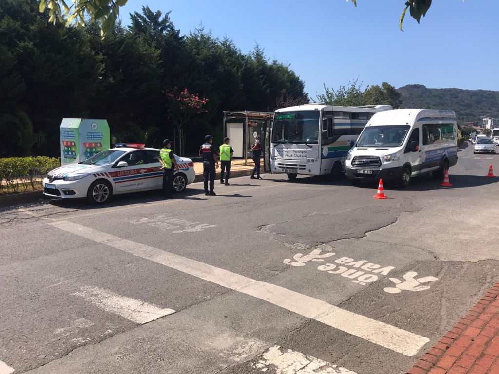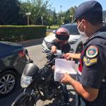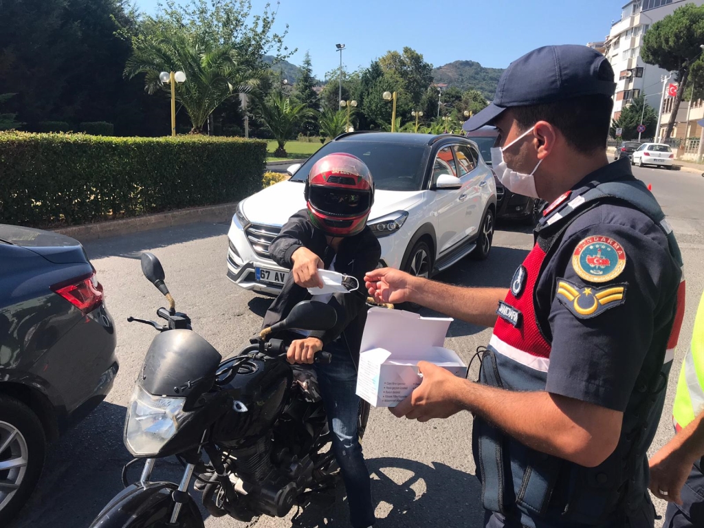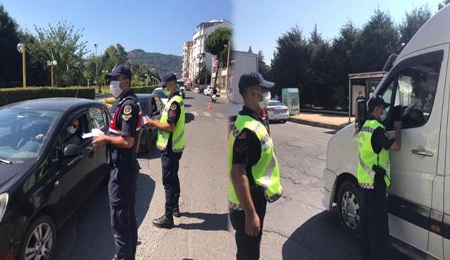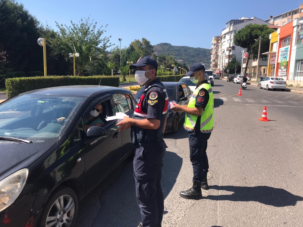 Zonguldak’ın Ereğli ilçesi Jandarma komutanlığı görevlileri tarafından Amirallik kavşağında yapılan uygulamada araç sürücüleri, yolcularına ve yayalara maske takmaları konusunda uyarıldı. Maskesi olmayanlara ise maske dağıtımı gerçekleştirildi.