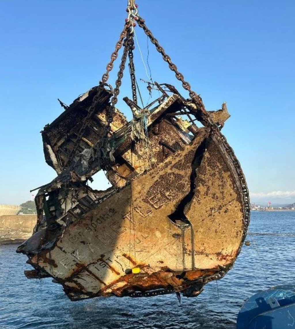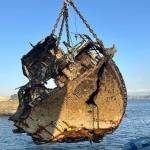 Aşağıdaki görselde enkazdan çıkarılan parçalar turuncu renkle belirtilmiştir. Su altında büyük bir parça kalmamış olup, mendireğin bloklarının altında kalan bazı küçük sac parçalarının alınmasının mendireğin zarar görmesine neden olabileceği öngörülmektedir.