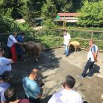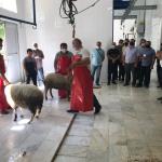 Veteriner Hekim Özgür Fahrettin Coşgun ve kesim personeli kurbanlık hayvanları tutma ve bağlama, kesim teknikleri ve et muayenesi konularında katılımcıları uygulamalı olarak bilgilendirdi.