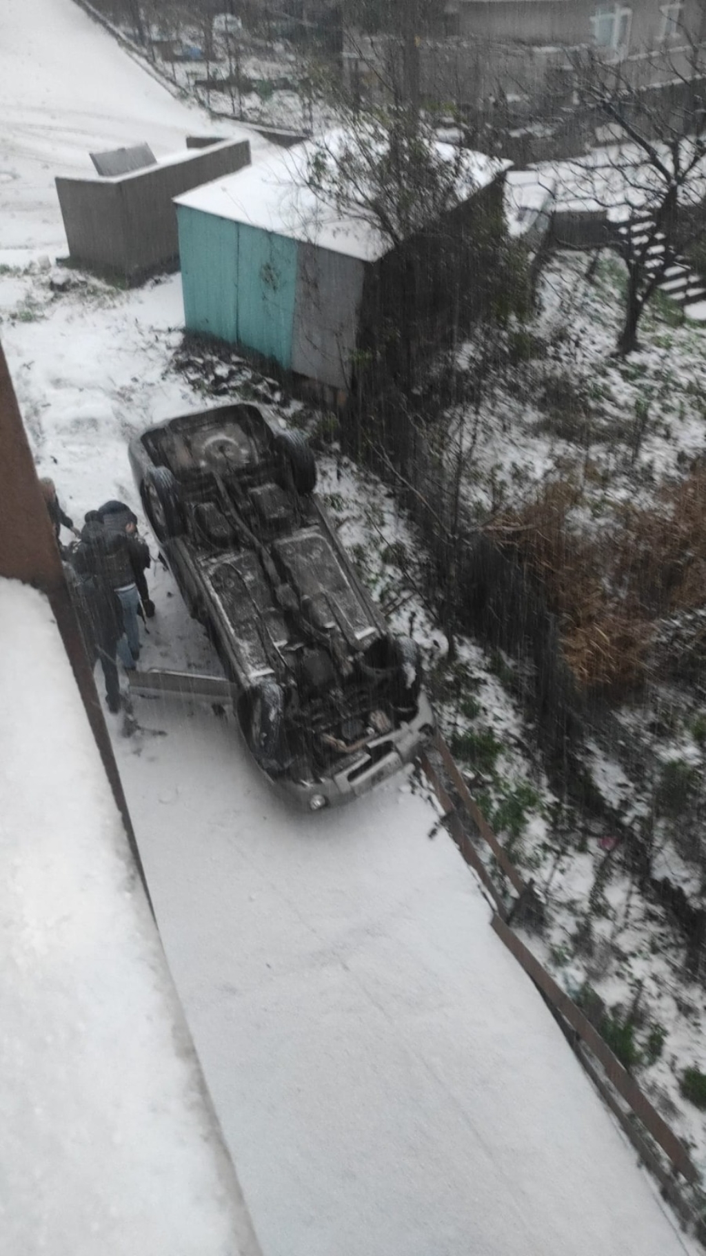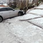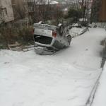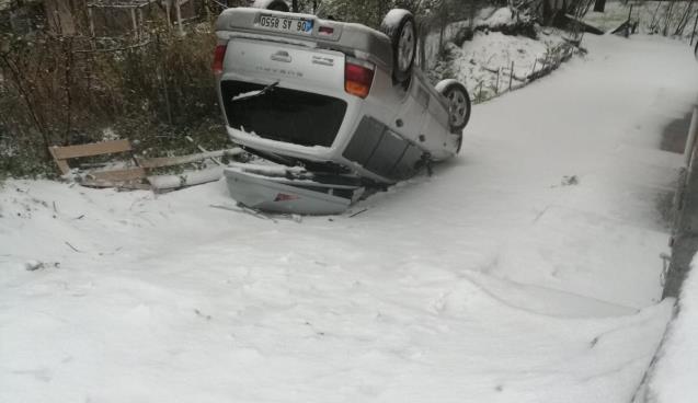 Ereğli’ de sabah saatlerinde etkisini gösteren kar yağışı ile birlikte kazalarda art arda geldi. İlk kaza Elmatepe Mahallesi’nde meydana geldi. İddiaya göre sabah saatlerinde çocuğunu okula götürmek için yola çıkan sürücü, karda aracın hâkimiyetini kaybetti. Yoldan çıkan otomobil takla atarak evin bahçe duvarına düştü. Kazada yaralanan olmazken araç kullanılamaz hale geldi.