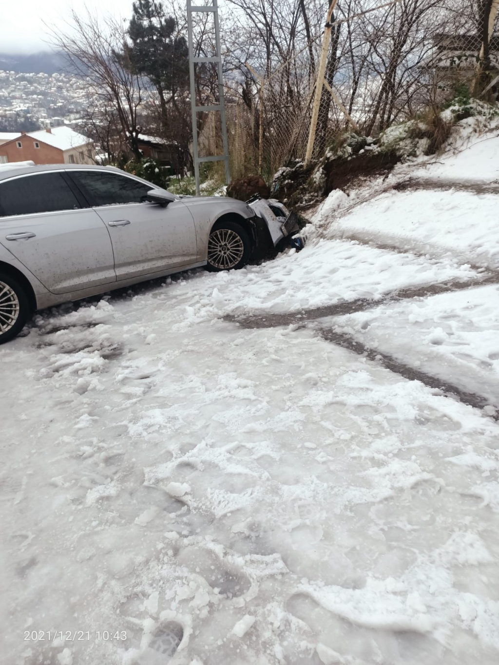 Kar yağışı sonrasında maddi hasarlı kazalar meydana geldi.