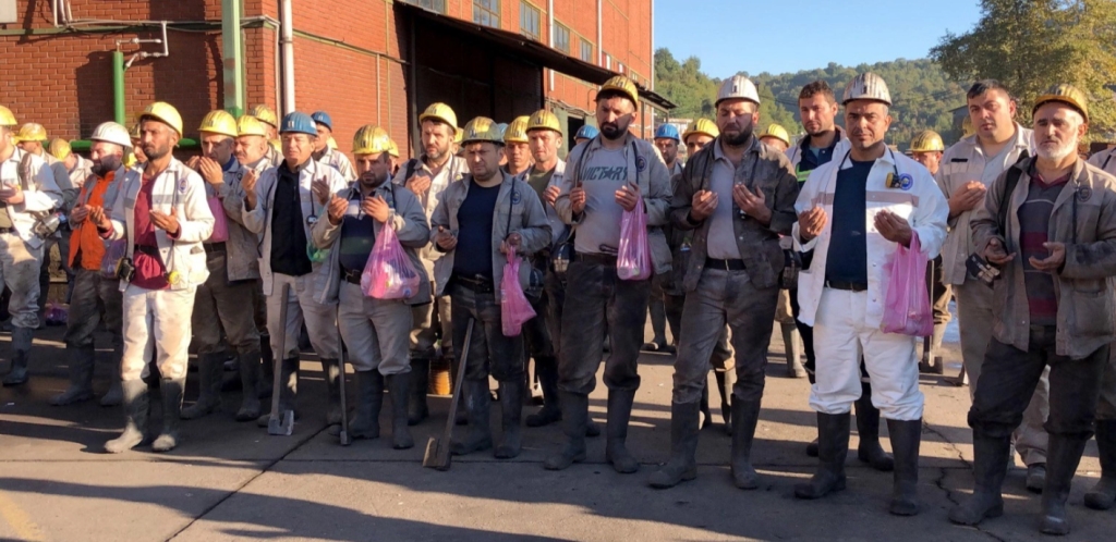 TTK Karadon Müessese Müdürlüğü Kilimli İşletmesi’nde çalışan maden işçileri, göçüklerde şehit olan tüm maden şehitleri adına Kuran-ı Kerim okuyarak dua etti.