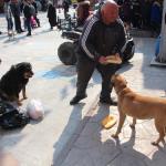 Ayakkabı boyacılığı yapan Hüseyin Öztürk, yaptığı açıklamanın ardından aldığı ekmek arası yiyeceği köpeklerin yanına getirdi. Kendi elleri ile köpekleri besleyen Hüseyin Öztürk, ömrünün yettiği yere kadar köpekleri beslemeye devam edeceğini sözlerine ekledi.