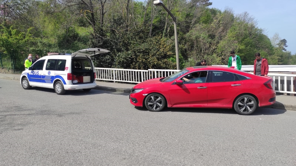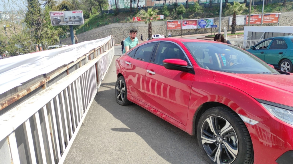 Karadeniz Ereğli’de sürücüsünün direksiyon hâkimiyetini kaybettiği otomobil yaya kaldırımına çıktıktan sonra köprü korkuluklarında durabildi.