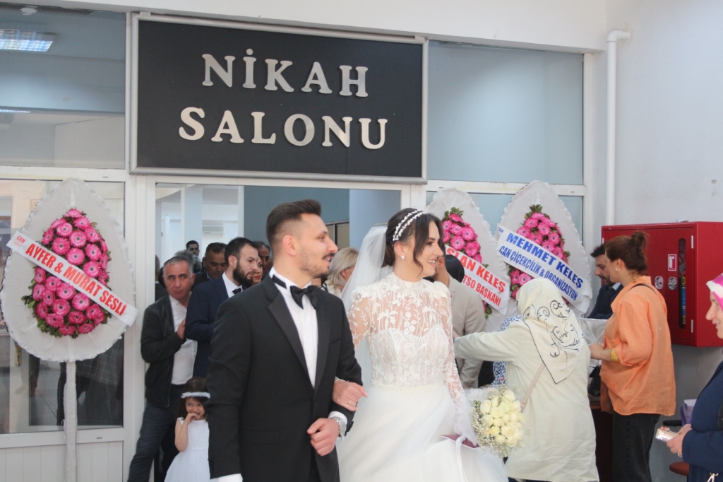 Atatürk Kültür Merkezi (AKM) nikah salonunda gerçekleştirilen nikah törenine Nikah memuru Ereğli Belediye Başkanı Halil Posbıyık, Eski Zonguldak Milletvekili Fazlı Erdoğan, Ak Parti İlçe Başkanı Saffet Bozkurt, TSO Başkanı Arslan Keleş, İş adamı Murat Sesli ve davetliler katıldı.