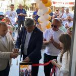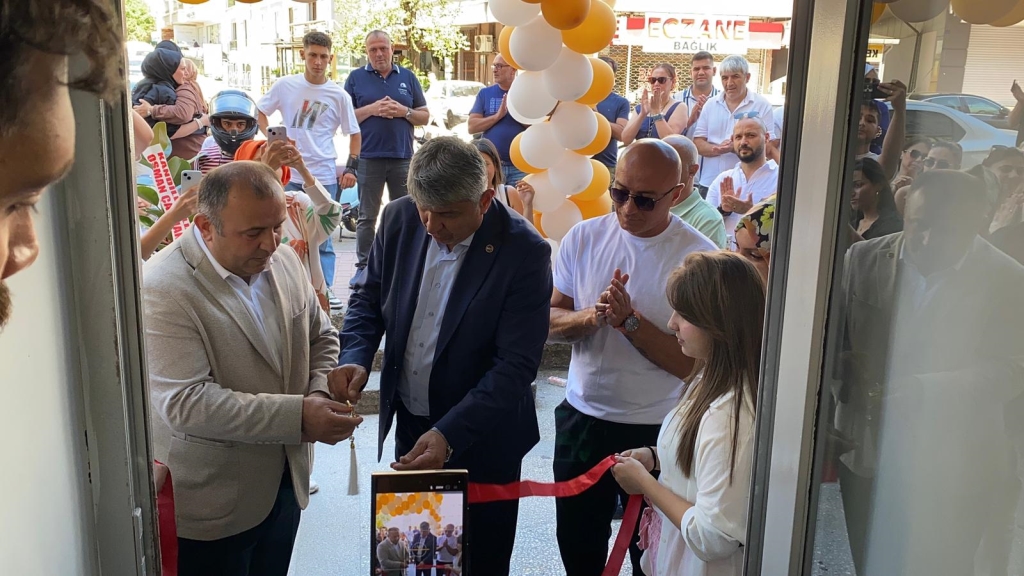 Pınar Danışmaz ve Tuba Danışmaz Üçpınar kardeşlerin işleteceği mağazanın kurdelesi yapılan duanın ardından Belediye Başkanları tarafından yapıldı.