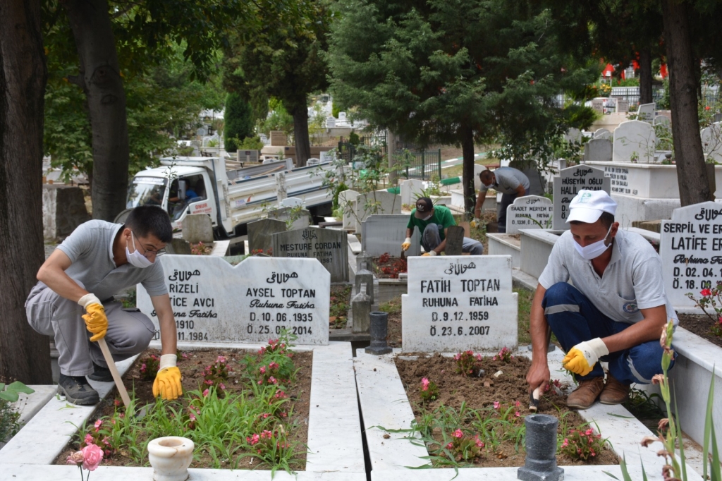 Belediye Başkanı Halil Posbıyık’ın talimatıyla Mezarlıklar Müdürlüğü, Fen İşleri Müdürlüğü ve Temizlik İşleri Müdürlüğü işbirliğinde mezarlıklarda başlayan temizlik, bakım, onarım çalışmalarıyla tırpan işleri arife gününe kadar tamamlanacak.